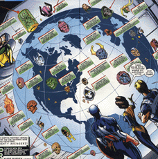 Globe Net: The Globe Net is a large holograph of the globe. It allows the Avengers to view clear and present dangers around the planet with villains, showing their current status and last known location.