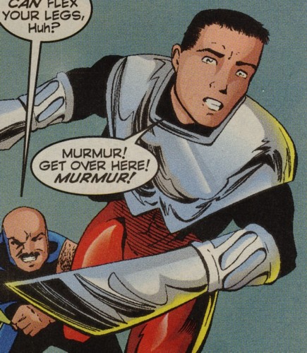 Flex can transform his arms into In strength sharp metal. When he succeed an Agility FEAT, he can block attacks to have In body armor, but only physical non-area attacks can be blocked. He can inflict Rm Edge or Blunt