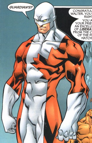 -Transport: Guardian's suit has a special movement system which could manipulate gravitons to stop Guardian from moving with respect to the rotating Earth below. This gives him air speed ranging from Sh-Z (near the equator) to In (near the poles). Regardless of speed, the movement occurs so instantaneously that it appears as teleportation to the naked eye
