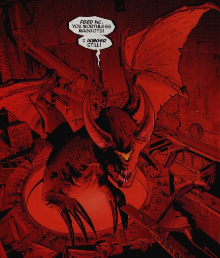 In Kierrok’s hellish home dimension, the walls and corridors are living things from which he can constantly absorb life-energy to heal up to 50 points per round. In his domain, Kierrok is likely immortal.