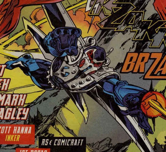M.A.C.H.-1 Armor: Rm material, It is technically a Mobile Armored Cyber Harness. He built it and it has benifitted by the modifications made by Techno. Anyone who wears the suit gains a +2 CS to both strength and endurance. Without the suit, Abner's strength and endurance falls to Ty. It has the following abilities: