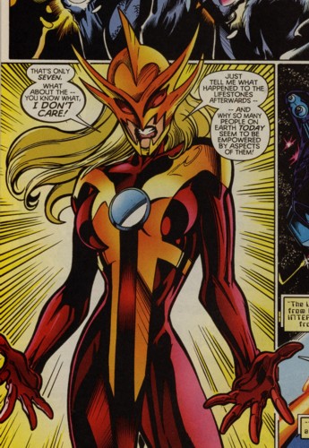 -By altering the visual effects Moonstone can change the appearance of her armor at will, taking on any appearance she wishes.