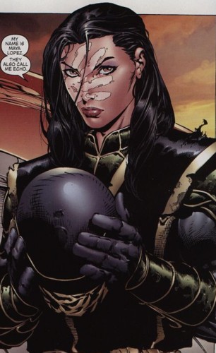 Photographic Reflexes: Echo can duplicate any physical action that she sees, ranging from musical performance and ballet to martial arts and weapons usage. She must make a Mn power FEAT to do so. In combat, she can automatically block one attack by a studied character on a power FEAT, she can block 2 attack if she succeeds an In powers FEAT. In addition, studied characters are at -2CS against her. If a character drastically changes her fighting style into an erratic, chaotic style (fight at -3CS with no talent bonus) then Echo cannot use this power and is at -2CS
