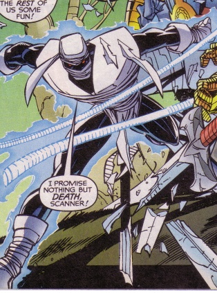 Psionic Energy Whips: Senyaka generates psionic energy in the form of whips that he uses to attack opponents. He does +1cs Energy damage above his current strength. Senyaka can use the whips to grapple an opponent with a successful called shot (Yellow FEAT) at which, he can absorb the opponent's life force the following round. The material strength of the coins is considered to be Rm for the purposes of breaking free. The range of the whips is into the next area.