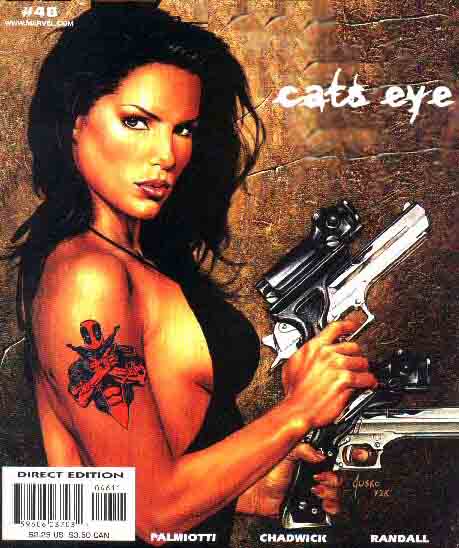 Legs: Over her jeans, are thigh holsters on both her legs. Each carries one of her Desert Eagles.
