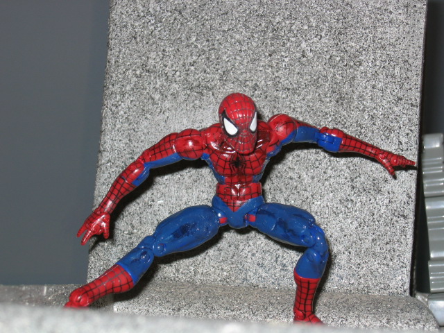 This Spidey is based on a 90's Bagley version. The body is a Parachute Spider-man with a ML Gambit neck ( botched head removal ) and a Catapult Spidey head. A little resculpting of the legs and a new paint job.