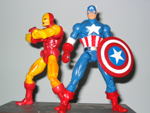 The Cap wa made from a Marvel Legends Captain America, But it took a sction of another ML Cap's torso and added it to Cap's to make him taller (I think he was a little short). After that I just sculpted new abs andfilled out the back and side a bit. I repainted him and added a larger star made of vinyl. That's it!