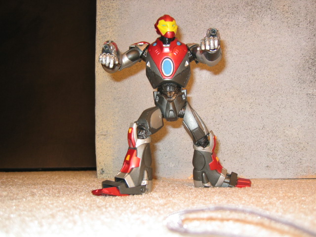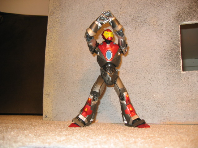 Iron man is just the Marvel Select Ultimate Iron man with added hinge knees and side swivel elbows and his height shave down a bit to be in a 6" scale. Ths pics are an attempt to show his new joints.