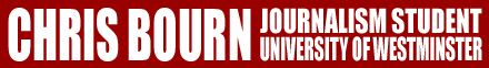 This website displays the work of Chris Bourn, currently a student on the Print Journalism Postgraduate Diploma course at the University of Westminster. Articles and projects are displayed on the Journalism page. More will be added as the course progresses. I am also a struggling musician. Details of the various bands, 'collectives', and loss-making ventures, with which I struggle can be found on the Music page. In collaboration with fellow journalism student James Merino, I helped produce an online resource on UK Agriculture, containing links and descriptions for the major sources of information on the internet relating to the farming sector. This is designed to help other students and journalists in their research, and was the result of a two-week website production project as part of the diploma course. A better photo of me will replace the ridiculous one on this page as soon as I find one. |