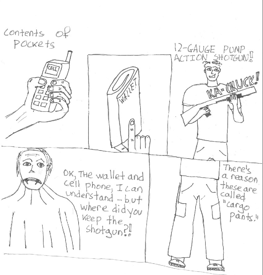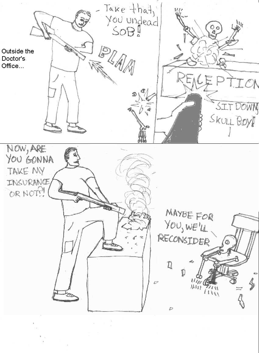rabid monkey. However, I managed to put a really long comic up ("Alligator Trap"). Just to clarify, yes, I want an X-Box. And yes, I'm going to get one. What am I going to do when I get one? Play Halo on it until my fingers fall off. That's how good that game is. It's like Doom and Quake for gameplay, except with better-than-Max Payne graphics. I mean, I almost crapped my pants playing it 8 player (2 X-Boxes, 4 controllers apiece), that's how good it was.