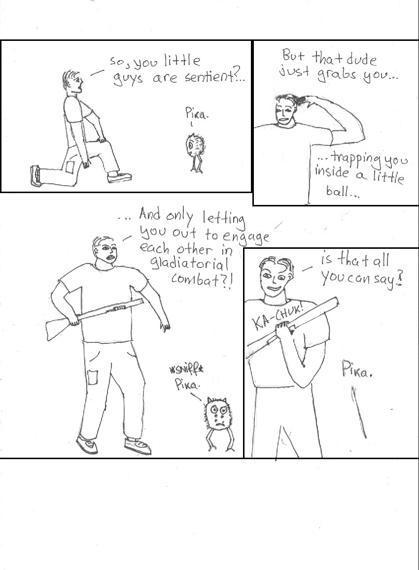 Ever wanted to see those annoying little kids on Pokemon get their asses beat into the ground? Well, now you can, here on the Unknown Comic (name change pending). And once again, I have nothing against Koreans, or gay people. I just don't like gay koreans who also tower rush in Warcraft III. Anyway, I think I've worn that joke down to a nub, so that's the last you'll hear from me about gay koreans.