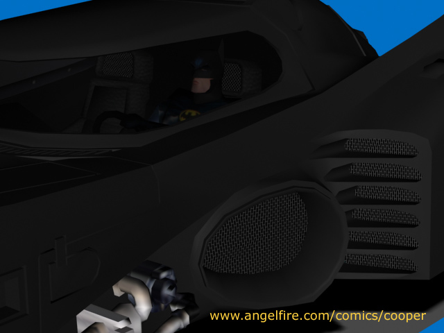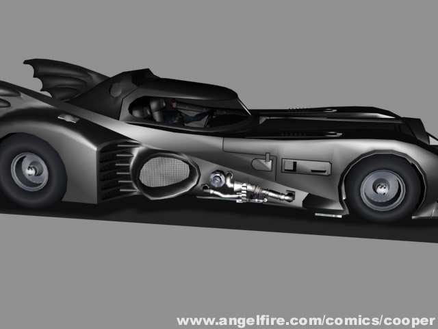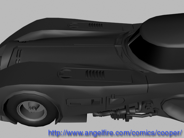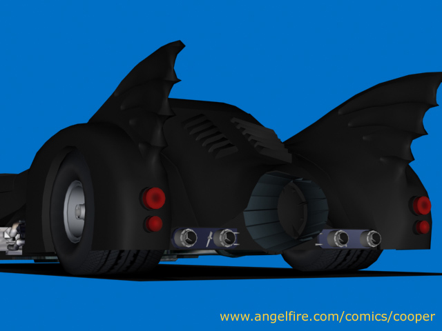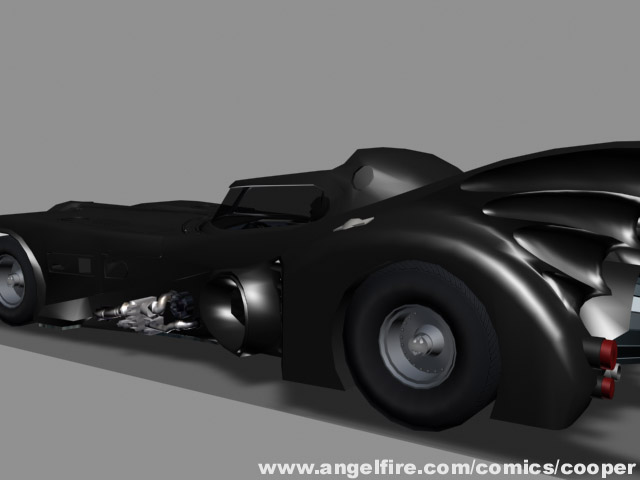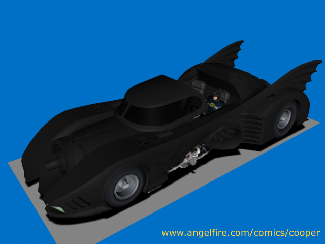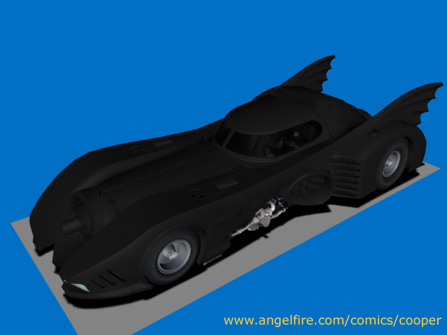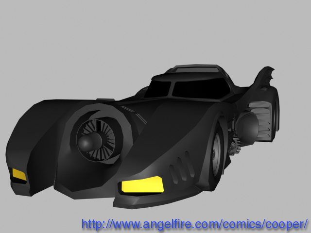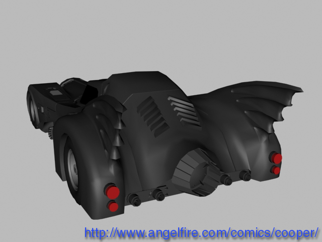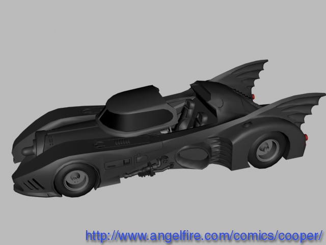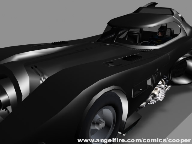 If you clicked the first link above, you’ve seen my earliest 3-D work. I decided to learn to a 3-D program just so that I could put the Batmobile into a computer game. Now that I look back at one of my earliest attempts at 3-D modeling, I’m amazed at how simple it is compared to my current stuff. I think that Batmobile was just under 800 polygon’s. The latest one is over 30,000 polygon’s and it isn’t even done yet. I don’t think I can fit that many triangles into any of today’s computer games at a reasonable frame rate, so I haven’t decide what I’m going to do with it yet. Maybe I’ll make an animation with it or something. Maybe DC Comics will license me to design a Batman game. (Yeah right!) If I’m lucky I’ll win the lotto and use it as a reference to build a life size replica for myself.