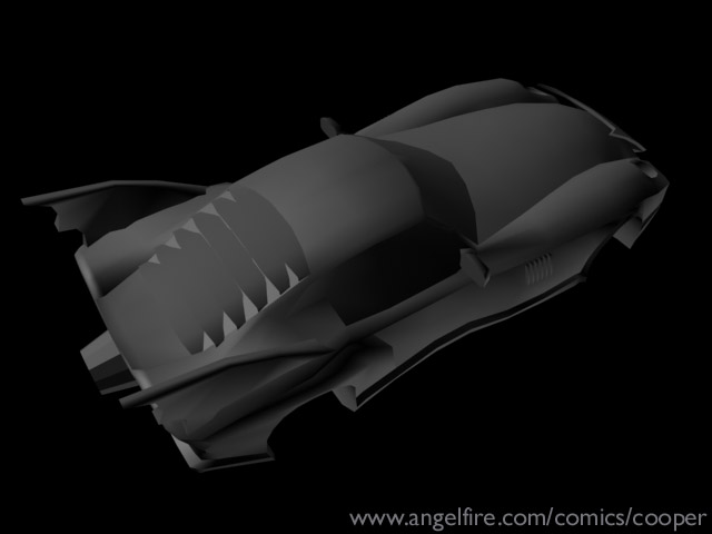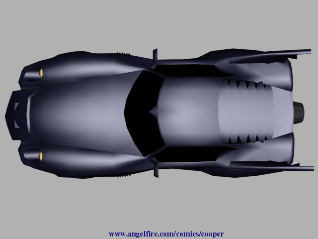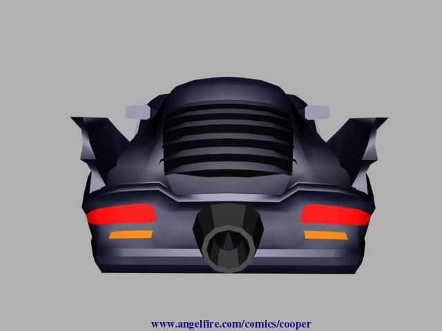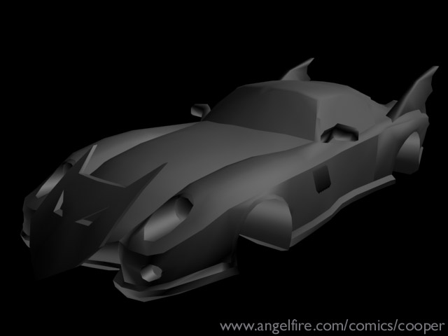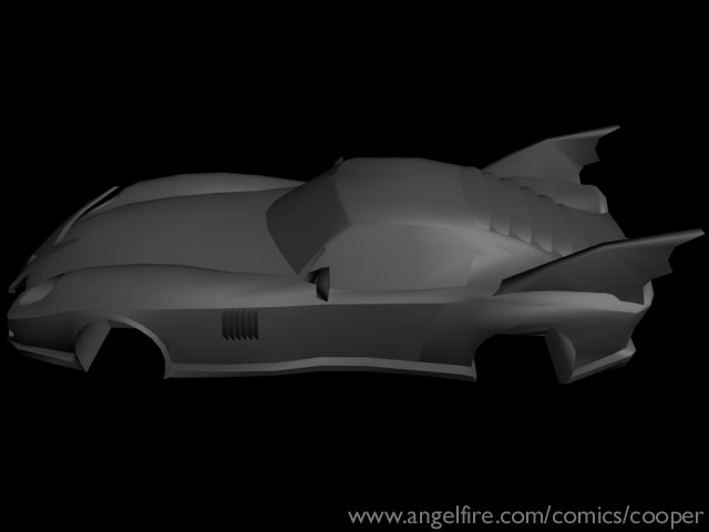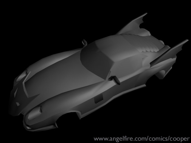 This is the "2000 model year" Batmobile, it is what Batman drives in the post No Man's Land Gotham City (except for in the current "HUSH" storyline). There weren't any blueprints or photos for me to use when creating this car so I went through my comic collection looking for panels with this Batmobile in it. I looked at every post NML comic I have, but I decided to HEAVILY base this 3-D models on Roger Robinson's interpretation of this car. It may be a personal preference as Robinson is one of my favorite Bat-pencillers, but I found that he is one of the few artists that can draw the Batmobile consistently from panel to panel.