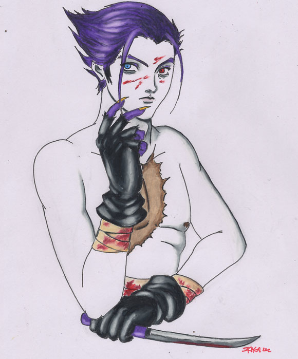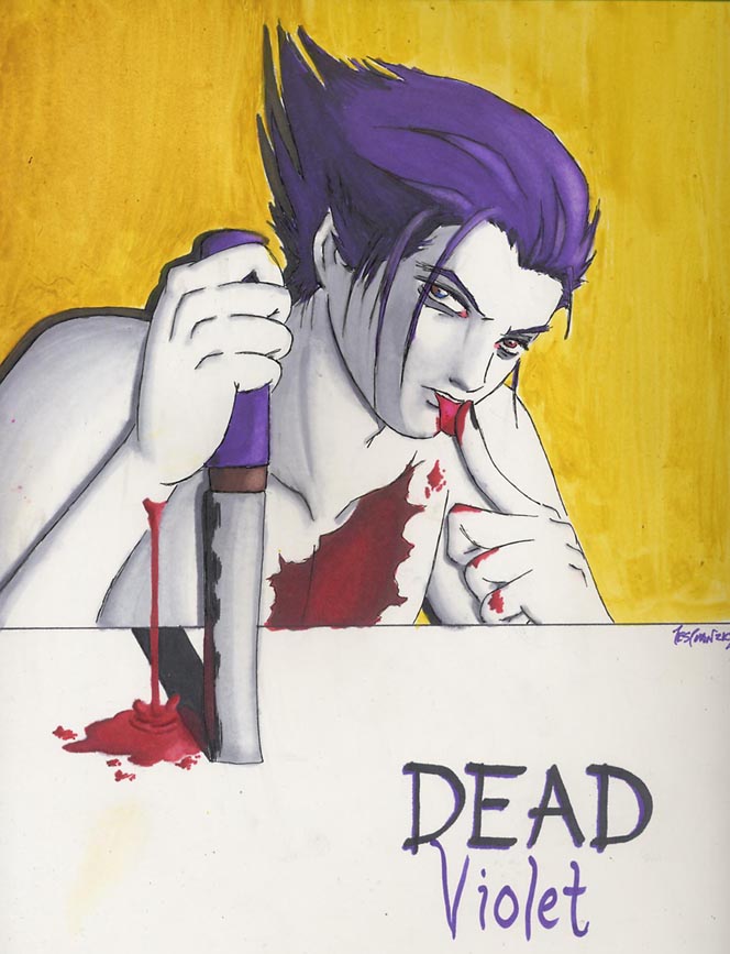 | Done in Prismacolour Markers. The Living Dead Violet, Kazuya Mishima, laps up some of his own blood as it pours from his wrist. | |