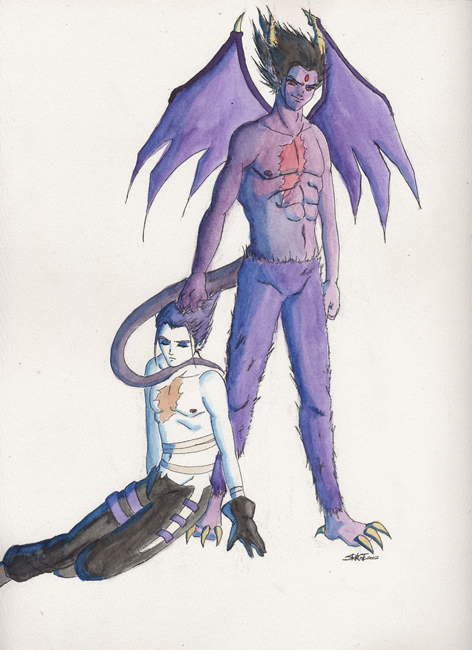 | This image depicts the relationship between Kazuya and the Devil that resides in his body...not a pleasant one, that is most certain. Watercolour. | |
