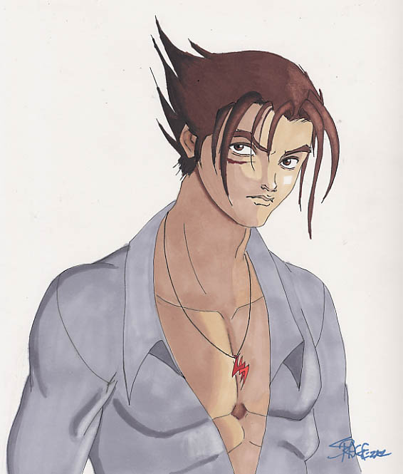 | A fellow poster at Tekken Zaibatsu Fan Art Central (FAC) by the name of Mim had asked me if I had any Jin arts. Seeing as how I do not, I made this piece to satisfy her and all the other Jin fans out there. I am personally impressed by it; it almost looks as though it came out of an Anime! Marker. | |
