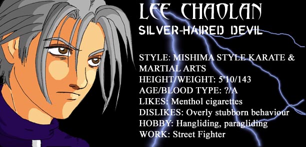"It had been about nineteen years since Kazuya's death, when word of the third Iron Fist came around. It made me sick to my stomach that Heihachi would do such a thing, and although I was very tempted to enter just to see how his ever-aging ass was doing, I knew that I would most likely not come out alive, so I remained underground.