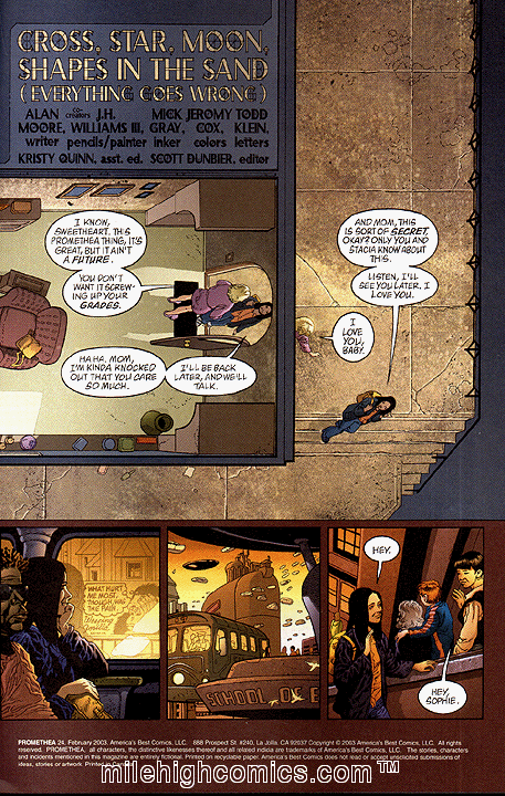 “This Promethea thing, it’s great, but it ain’t a future. You don’t want it screwing up your grades." - Trish Bangs,. Pg 3