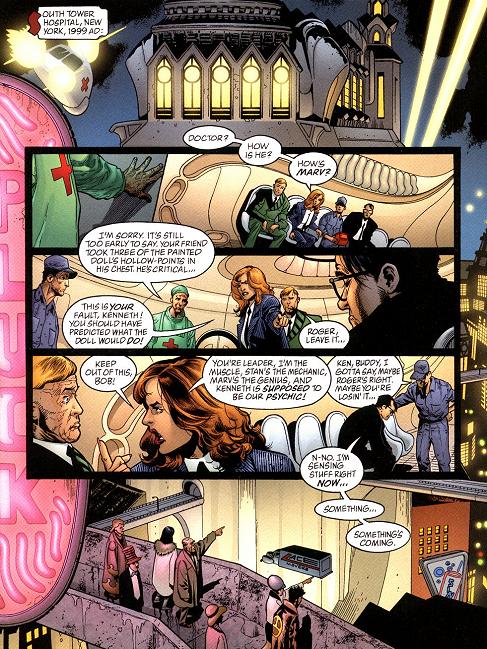 Pages 6-7: Nice effect of the real world of the hospital room gradually being overtaken by the Immateria. Just use your imagination.