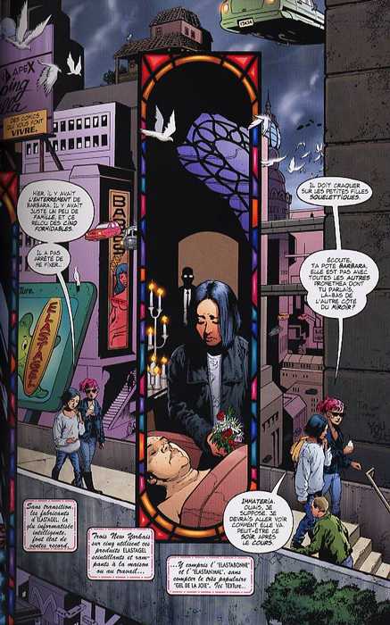 Note the stained glass effect in the background behind the panels which is sustained for most of the issue except for visits to the Immateria, Jack Faust's shop and Henry Royce's nightmare.