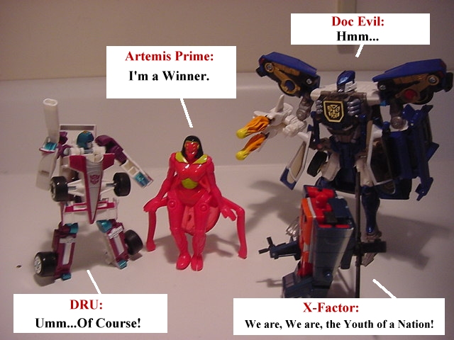 *Meanwhile Artemis Prime is hobnobbing, trying to soak up praise for her ill-gotten gains*