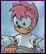 When Porker Lewis lost his nerves following his capture by the Brotherhood Of Metallix and decided to give up being a Freedom Fighter, Amy was the first to speak up against Sonic’s harsh treatment of Porker, proving she had come a long way from the infatuated girl she used to be. Sonic eventually swallowed his pride and wished his friend well. Amy proved also that she is a competent Freedom Fighter in her own right by defeating the electrical beast Plasma, then allowing Sonic to take the credit, believing the people of Mobius need to look up to Sonic as a source of hope.