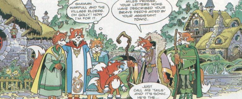 It was quite some time before the Nameless Zone called Tails home again, when they did it turned out to be Morain who had summoned Tails, needing Tails’s help to rescue the Enchanter Kings and Errol from the Goblin nation. However they discovered that the Goblins were trying to negotiate a truce between the two races. Tails, bound by the magic that creates the inter-dimensional portal between Mobius and the Nameless Zone, was forced to leave before he could observe these truce discussions. Since then Tails has not had any contact with his home, continuing his heroic deeds on his true home of Mobius.