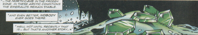 Bios: A cave located within the Frozen Zone, a freezing cold section of South Island, where Sonic first hid the six Chaos Emeralds from Doctor Robotnik. They were safe in the North Cave, the cold temperatures kept the Emeralds stable, until Captain Plunder stole them. After Sonic retrieved the Emeralds, he kept them in a special sub-zero temperature box in his secret base, their location became a mystery once again.