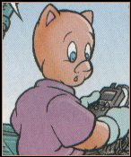 Porker found himself tied to a roller coaster track with Sonic when they tried to liberate the Casino Night Zone. Luckily, Sonic saved him from that predicament and after Sonic defeated The Marxio Brothers, Porker rigged Robotnik’s hypnotizing machine to explode. Porker Lewis slipped up not to long after that when he accidentally told Captain Plunder where to find the hidden Chaos Emeralds, however Sonic easily retrieved them before rushing off to save Amy from the Metallix Badnik. Porker’s technical knowledge was stretched to the limit after Robotnik launched his revenge of the Freedom Fighters by storming their base, Porker managed to download the Kintobor program back onto the Ring and later on to a portable laptop as the Freedom Fighters were forced into mobile hiding as “Bob Beaky’s Travelling Circus”.
