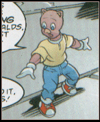 Porker put his brain into action to help unfreeze the Pleasant Zone, figure out Robotnik’s gateway to the Ice Cap Zone, fight against Predicto (although Porker’s fighting left a lot to be desired) and liberate some citizens from Metropolis City. Porker Lewis came into play in a big way when the Freedom Fighters travelled to the Miracle Planet to stop the Brotherhood Of Metallix, Porker rigged a Metallix to explode and destroy the Metallix but was forced to stay on the Miracle Planet to re-set the Alpha Device, which would stop it from transforming the Miracle Planet into a metal hell. Thus, Porker was left stranded on the Miracle Planet for a month.