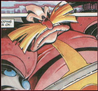 Following the defeat of his devastating Splitzoid, Robotnik joined forces with the Plax to absorb power from the very Planet itself. Robotnik had won, Sonic was on the verge of defeat but the Doctor was defeated when Shortfuse The Cybernik caused all the power to be drained from Robotnik and back to the Planet. The explosion caused Shortfuse to be set free and it looked as though Robotnik had perished. This was not to be as Robotnik fled back to his hidden base and sank into a deep depression. Hoping to cheer his master up, Grimer unleashed Chaos, who proceeded to absorb the powers of the Chaos Emeralds. Robotnik and Grimer attracted Chaos to their Fortress by grabbing some of the jettisoned Emeralds. Robotnik had nothing to do with the fight against Perfect Chaos; he resigned himself to wanting to see the end of all life on Mobius. This revelation of Robotnik’s insanity caused Grimer to quit his employee. However the end did not happen as Robotnik had hoped, as Chaos was defeated and Super Sonic as merged back with Sonic. Once and for all, Robotnik was defeated.