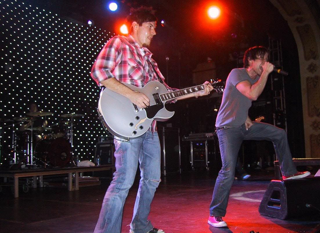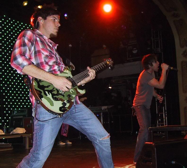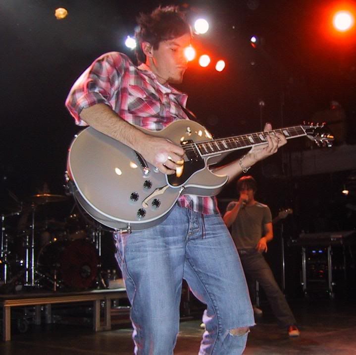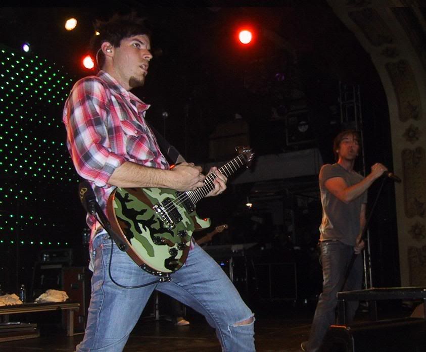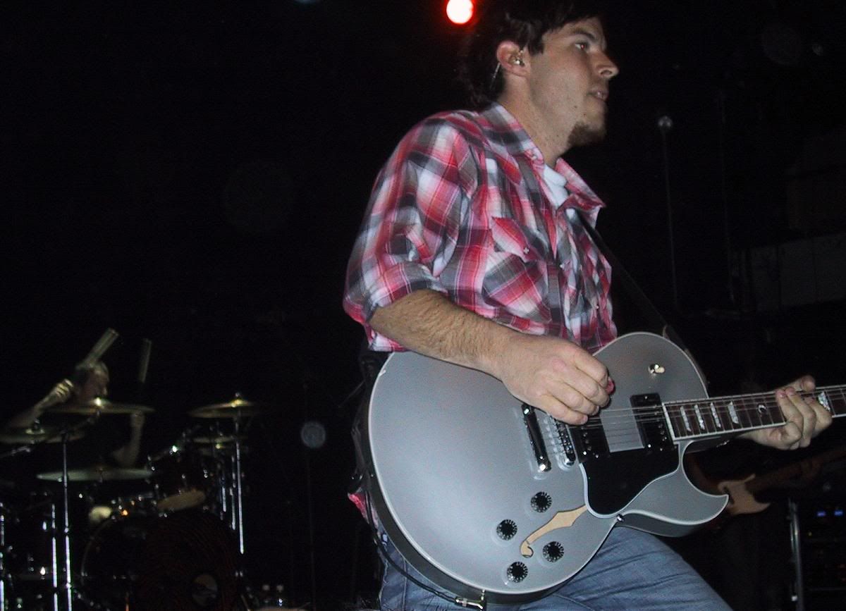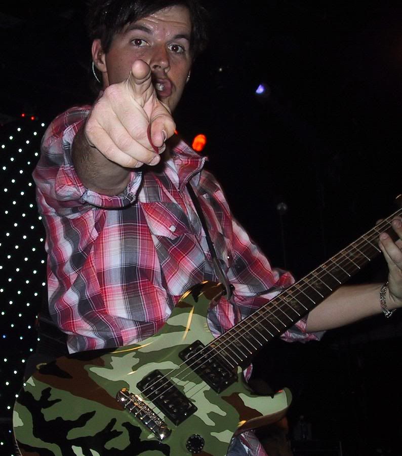 Dan points at me for my picture and gives me his guitar pick!