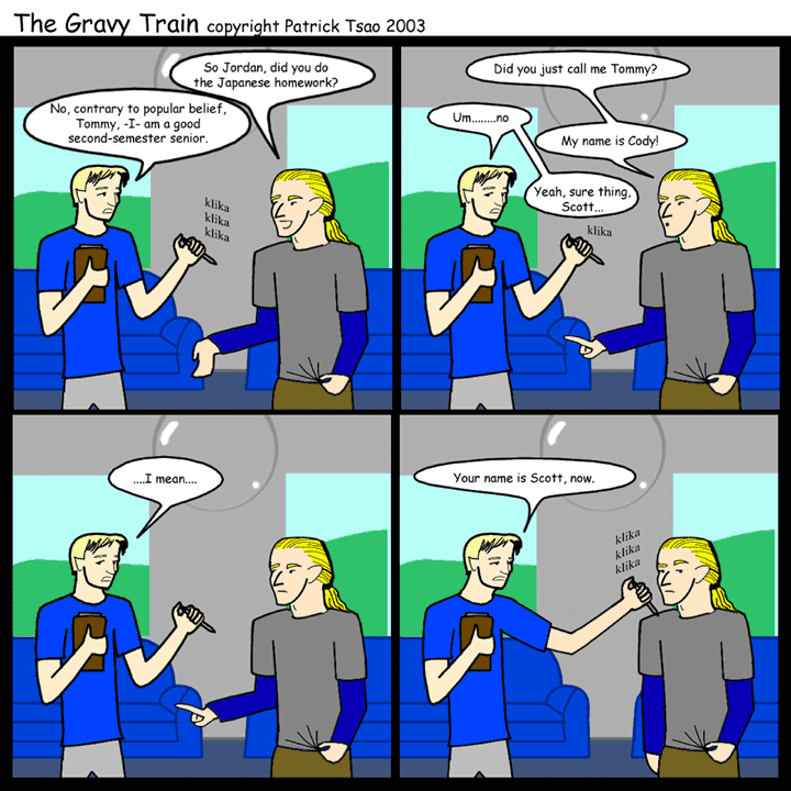 Six years. Or five and a half. Five and a half years, he's been with us, and he still doesn't know our names! He called me Spaghetti once, for chrissakes. Spaghetti!