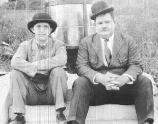 Stan looks up the steps and starts crying. He begins to climb. He climbs very slowly. Ollie leans on the machine at the bottom, and it rolls out from underneath him. He falls, gets back up and jerks the machine back again. He leans on it again, and it rolls away again, leaving him sprawling in the road. He is mad, as he gets back up. He pulls it to him, and begins kicking it.