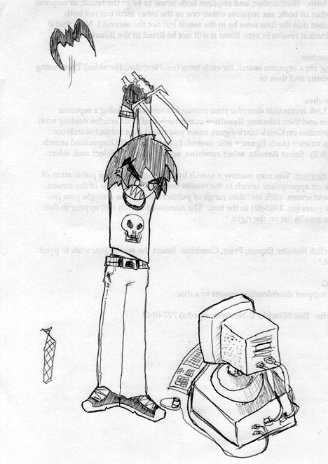 These are sketches and doodles I've done in class and on the go. Nothing of great interest in here, but it is all stuff that I like, or find humorous, so enjoy.