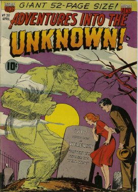 February 2004 : ACG put out some pretty tame pre-code horror material, as many collectors know. However, I'm choosing this cover for our initial Cover of the Month because this was the first pre-code horror comic I had ever bought. I purchased it for less than a dollar at a used paperback store in 1993. While looking up its listing in Overstreet I noticed a footnote stating "last pre-code" next to an issue. I began to investigate the term, leading me to other terms like "injury to eye", "bondage cover," and all the other great quotes Overstreet is known for. I quickly fell in love with these pre-code "bad guys" and have been hunting them down ever since. - Keith