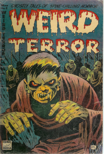April 2004: Here's a recent addition to my collection that I am quite happy about. During the pre-code days of the early 1950's, Comic Media was doing some of the best horror around. They were right up there with EC as far as shock value is concerned. Don Heck did pretty much all the covers for this run, and they all featured some kind of close-up face shots. Check out the corpses hung in the background. Too cool. Anyway, I chose this cover because it was a birthday gift from my girlfriend this year! How great is that?! Comic collecting has often been considered geeky, so it feels great when you find someone who not only understands your hobby, but supports it as well! Thanks, Nicole! I love you! -Keith