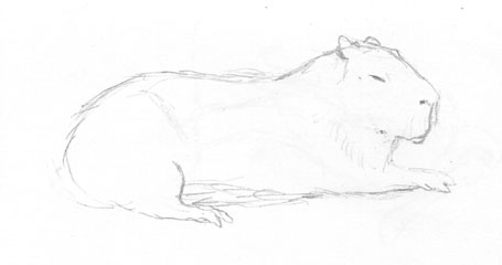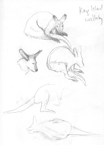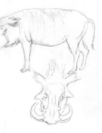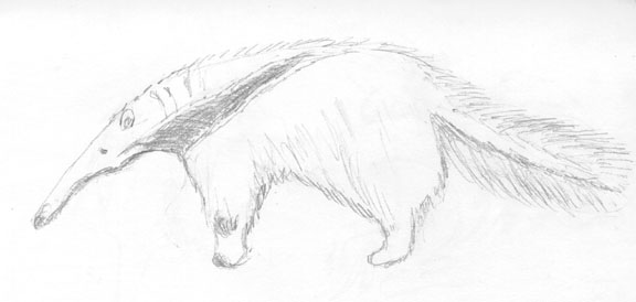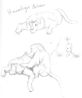 My first day off for Midterm break. I was going to clean my apartment, but the Shadow called me and asked if I would like to go to the zoo. Who (besides my Mom)in their right mind would choose to clean over going to the zoo? (Hee hee hee) So away we went and I showed him my new CD from my sister and I think he liked it. I brought my camera and a sketchbook, deciding that this time around, I would try to sketch the animals rather than photograph them because it's a rare opportunity to draw exotic animals from real life rather than National Geographic or Ranger Rick magazines. So we went through and the Shadow used his new digital camera while I sketched. One of the first animals we saw was a black king snake a lady had on a board, weaving its way between these pegs. It was really cool because it was as slick and shiny as obsidian, reflecting the blue sky. Then we saw tortoises which were slow and a little boring even though they were eating. I ended up drawing an Asian elephant, a toucan, a spoonbill, a wallaby, baboons, an anteater, a capybara, gerenuks (these long-necked antelopey things), giraffes, and my favorite to draw was the warthogs 'cause they have such a unique body form and face. So ugly, yet so...intriguingly foreign. In a cool alien beast sort of way. Then I went home and went to work.