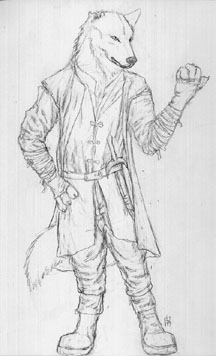 I really dig this Rasputina song. Rarely can I stand to hear the same song more than twice in a row...but this one is really something. Very pretty - and full of feeling. It makes me want to draw something tragic. Which is, in my opinion, great art. But this wolf was fun to sketch too. This is a character of a friend of mine. I don't mind drawing for her because she has a real knack for keeping role playing interesting and I like her characters. And it's fun to make people happy. I tell you - if I could get someone like Boxcutter or Kyoht to do some of my characters, I'd be overjoyed. Anyway, I think I'm getting better. Better than I was, at least. I just need to draw MORE.