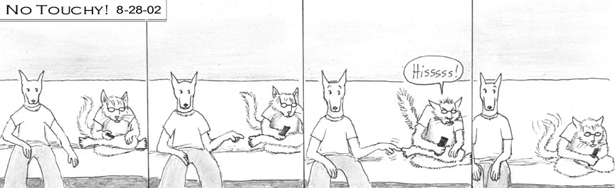 Why is it that guys think that girls would like an absolute stranger to touch them? Am I just some sort of weird-o freak girl who's out of the loop or what? Just because I invite a guy over to watch a movie with me and my neighbor doesn't mean I want him to be my boyfriend or something, dangling his arm over my shoulders or...touching my toe even. It's like there's this implication or something like I have some SIGN on my forehead that reads, "Touch me I'm a Girl!" Grrrrr...You know, I was probably sending out all these 'signals' that I have no clue about like when I said "You can sit on the futon if you like." Perhaps in another foreign dating language this means, "Come sit near me and put your arm around me I'm a lonely chick!" Whereas in my language it means, "Sit where it's more comfortable. The floor is hard." Good grief can't I just have a guy here who's a friend? Someone I can sit and watch X-men with without having to be so paranoid as to huddle up in a ball, gripping the remote like some sort of weapon?