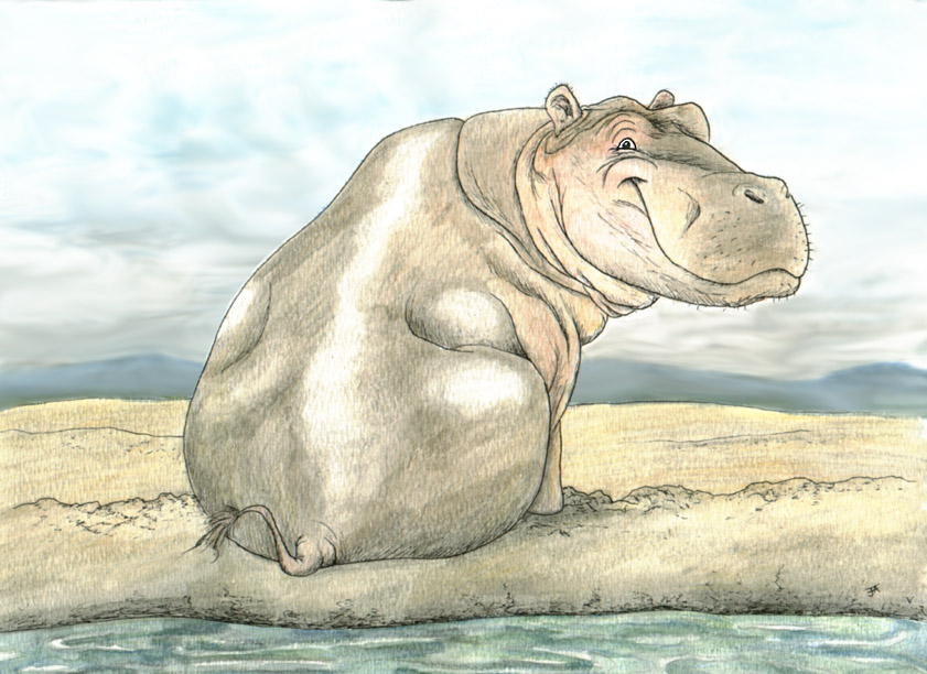 The hippo is sort of an assignment I made for myself. I told one of my online artist friends that if she inked and watercolored something like Cara Jane Mitten then I would too. So here it is. Not exactly as detailed as a Cara Jane Mitten piece, but it's a fair try I think.