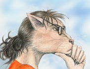 Get up, run to the bus stop/work while cramming something edible into my mouth, work/attend class all day, get home around 7, eat something, talk to the roach and draw until 2 a.m., then collapse in utter exhaustion. Why do I feel the compulsion to draw at 1 and 2 in the morning? Because I'm a wereartist, of course. No, really it's the only time I have to do it if I'm going to, and I feel I must because I love it and it is worth it.
