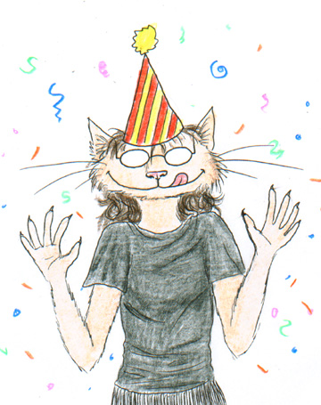 Jess drove Ann-helena and I home. Once I walked through the door I dove for the computer saying, "Please still be here, please still be here!" And was thrilled to see that indeed, the Roach was still awake despite our accursed time difference. We had a nice chat about beverages, meat, and movies, and then finally decided to sleep. I stayed up, however, to work further on the secret project. Now it is time for me to collapse into an unconscious heap. Goodnight!