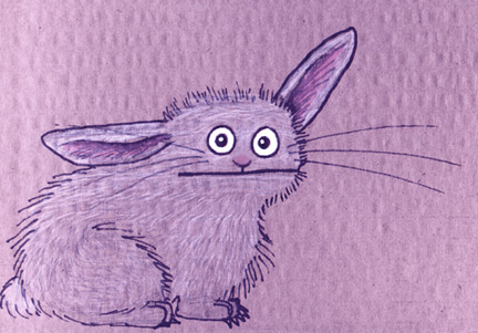 No, the bunny doesn't have anything to do with anything. I just thought I might do something non-dark and non-violent since more than one person has complained about my dark art. See, I CAN do happy cutsie stuff. Sort of. Okay it's more of a muppet rabbit - but I did resist adding a row of sharp teeth. Heh heh heh.