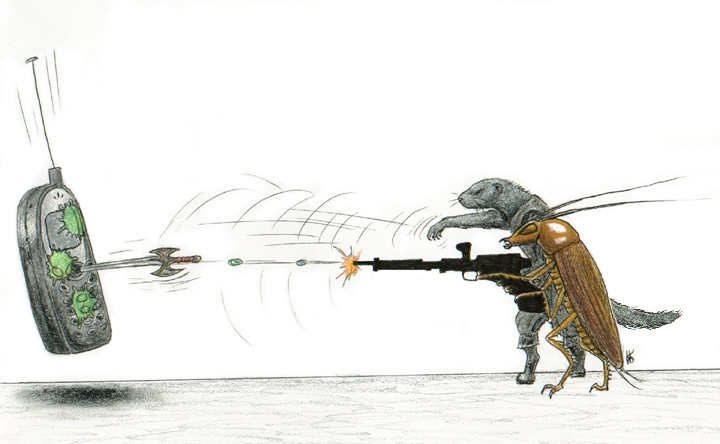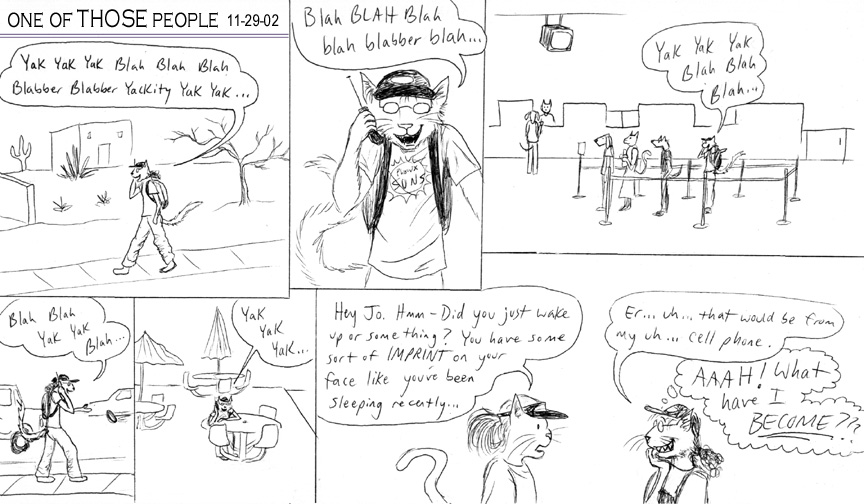 Down with cellular fickleness! ARGH! I kill it because it commits suicide continually. I hate it but I need it! Why can't I get a decent phone conversation??? Because I'm cheap and won't turn on my roaming feature, hee hee hee!