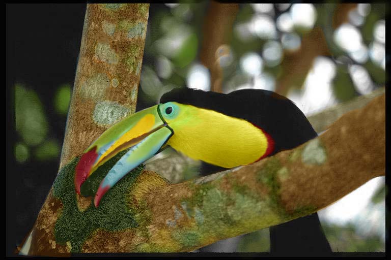 The toucan pic is a project I did for my 2D Computer Graphics class. The first picture is the original, and the second is a black and white version that I colored. There are some very subtle differences if you look closely.