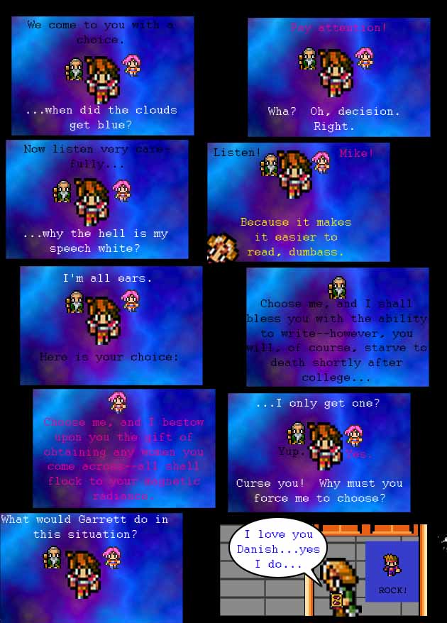 Garrett Says: Awkward! But I do really like the part where my head just pops up randomly at a jaunty angle.