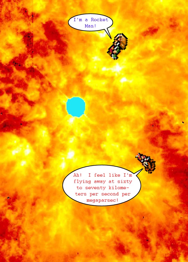 Mike Says: It's okay. Soon the temperature will cool enough so that matter can form, and Garrett and I won't be spiraling through plasma anymore.