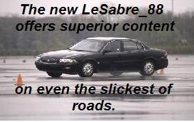 October 2002: Brian Dreggors unveils his brand new LeSabre_88 webpage. Heeding the call for newer content, better graphics, and a cleaner design, Mr. Dreggors has embarked on a mission to bring the 15 or so people who actually view his webpage the best that 20 free megabytes on Angelfire can deliver.