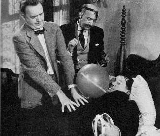 The situations at Stan and Ollie at their apartment are pretty mechanical, too. Ollie's doctor (James Finlayson!) makes Ollie use his "lung tester," a balloon that you know in a second is there only to explode the apartment. Then the apartment gadgets go haywire--water comes out of the left faucet when the right one is turned on, the refrigerator plays music while the radio freezes over, etc., etc., ad nauseum. L&H seem to be rehearsing some unsung 20th Century-Fox writers for future material here.